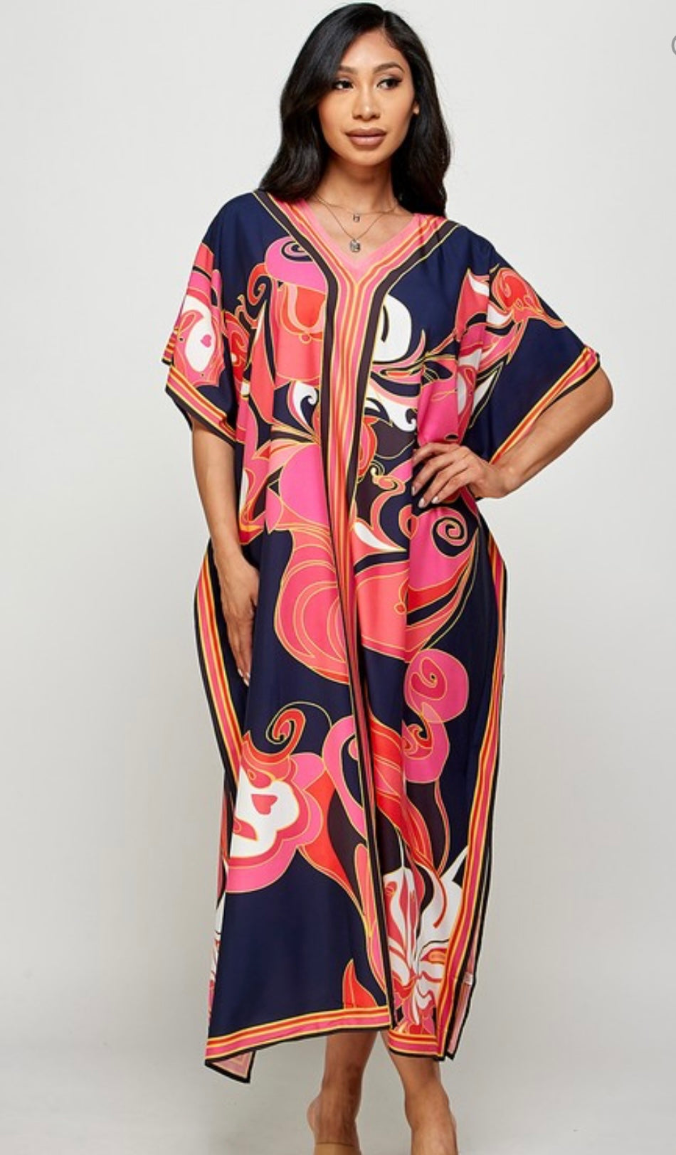 Multi colored maxi summer dress with side slit. Loose fitting.